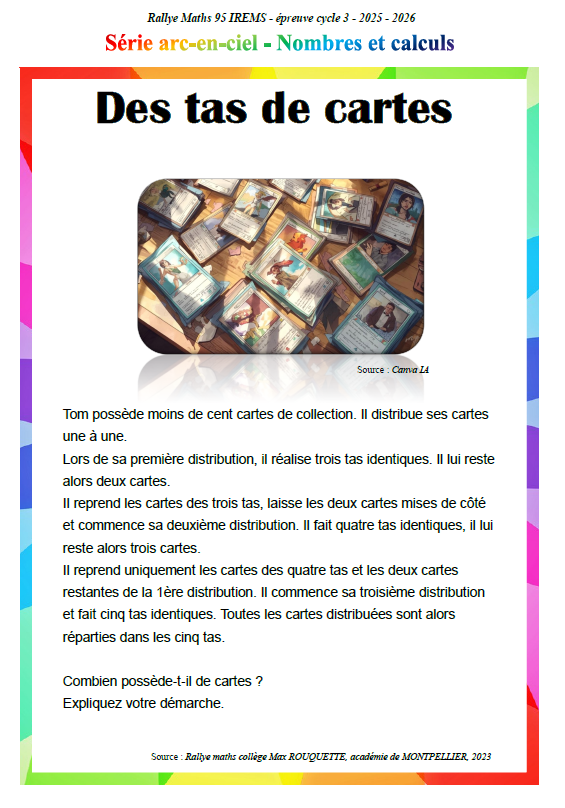 Cycle 3 GRANDEURS ET MESURES ESPACE ET GEOMETRIE NOMBRES ET CALCULS LOGIQUE VERT BLEU JAUNE ROUGE ARC-EN-CIEL